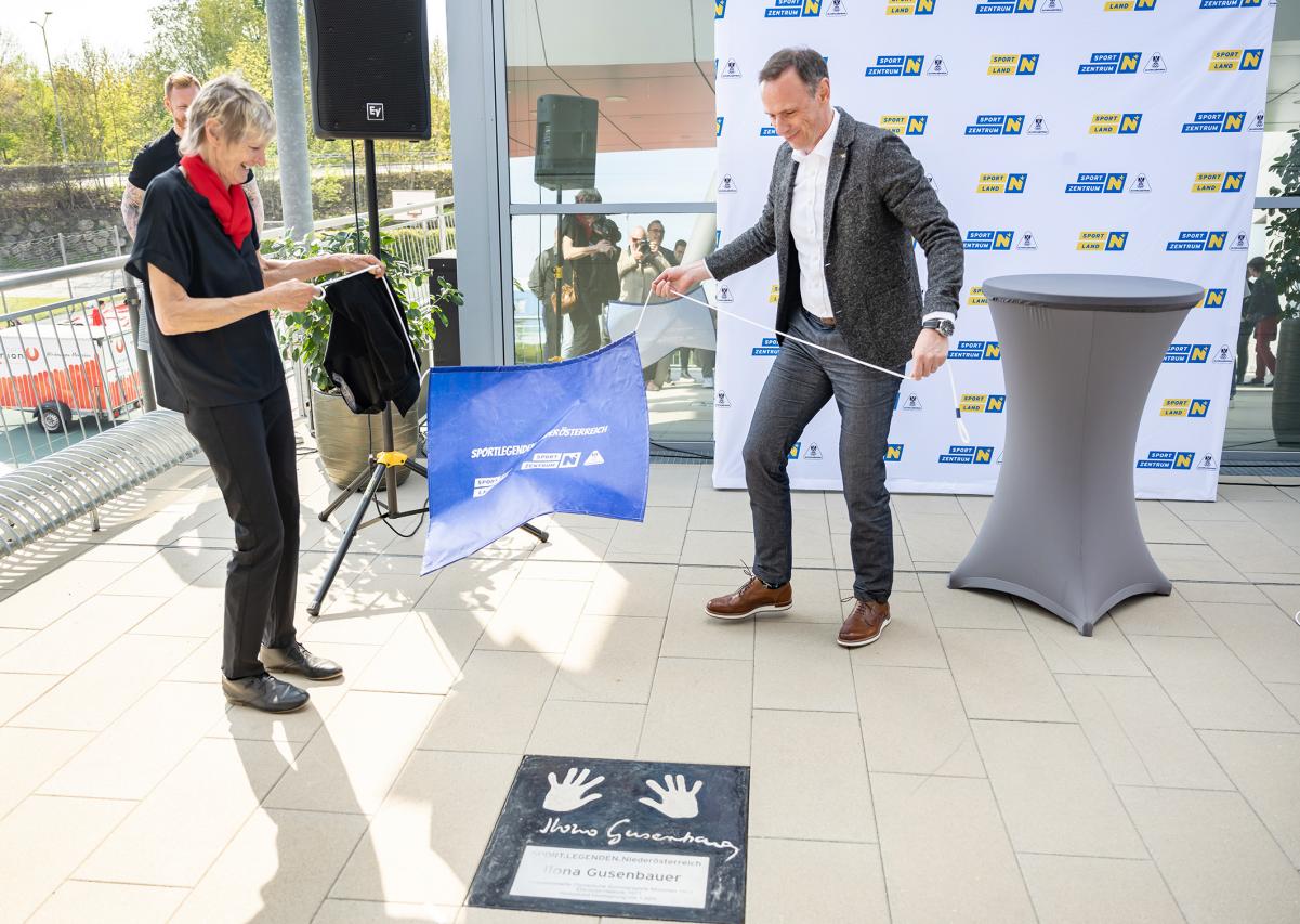 Ilona Gusenbauer ist ab sofort auch Mitglied des Walk-of-Fame der SPORTLEGENDEN Niederösterreich vor dem Haupteingang des SPORTZENTRUM Niederösterreich.